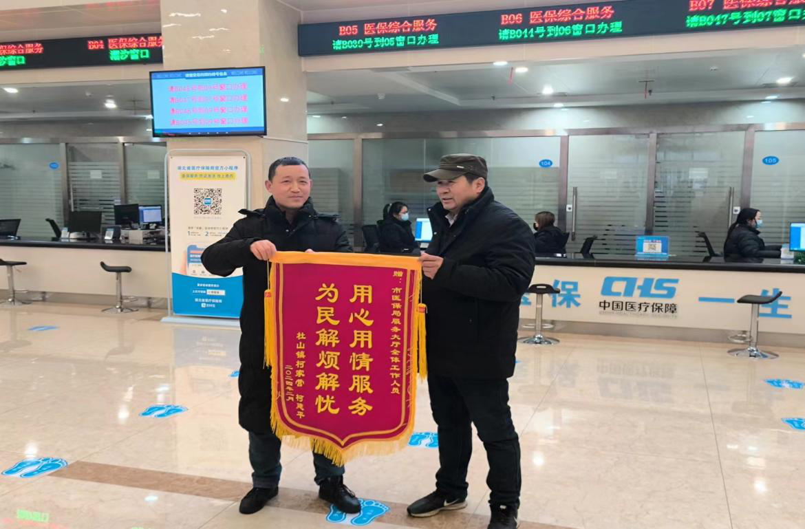 2月22日,一位群众手持让人瞩目的鲜艳锦旗来到市医疗保障服务中心服务大厅,为此前工作人员不厌其烦地耐心帮助他及家人成功办理了“重症慢性病”业务表示感谢,连连说道此举大大解决了自己及家人治疗疾病的大问题。